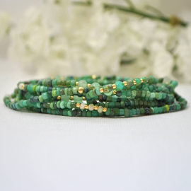 Beaded Wrap Bracelet, 9 Wrap, Layered Wrap, Green, Copper, Multi-Layered Bracelet, Beaded Stretch Bracelet, Elastic Bracelet