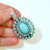 This gorgeous hair clip is has small blue dots radiating from a smooth, oval center. The blue sun embellishment is secured to a silver alligator clip.