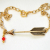 This gold charm anklet has an aged gold arrow set in the middle. A red Swarovski crystal bicone dangles near the tip of the arrow. The stainless steel chain will not tarnish.