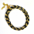 This beautiful wrap bracelet is made with fine black seed beads with gold seed bead spaced evenly along the string of beads. Closes with a gold plated lobster clasp and a large jump ring that has been soldered closed.