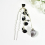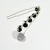 This hair charm is made with a string of black seashell disks and black Czech crystals accompanied by a silver chain with a grey clam shell hanging at the end.