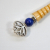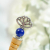 A pretty silver lotus flower sets atop a dark blue gemstone bead. Silver accents complete the design.