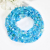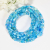 This beaded wrap bracelet is made with a collection of glass beads in circles, squares, dots, tubes, flowers, and Czech crystals, all in shades of light blue, tropical blue, and sky blue.