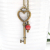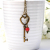 This hair charm is made with a large bronze key hanging from a bronze chain. A second bronze chain with red quartzite ruby gemstone beads with bronze bead caps hangs alongside.