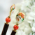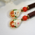 This pair of hair sticks is topped with a beautiful cloisonne teardrop that has dark peach color flowers on a crackled white surface. The bead sets atop a coordinating dark peach bead, with aged gold accents completing the design.