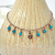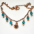 This wonderful celestial anklet has an aged copper moon set in the middle of the copper chain. Three copper and teal charms hang on either side of the happy moon charm.
