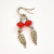 Feather Earrings, Dangle Earrings, 2 inch Earrings, Red Silver Handmade, Your Choice of Leverback or Sterling Silver