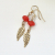 These beautiful dangle earrings are made with a red Czech glass roundel beads with aged silver feathers dangling below.