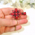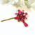 This fun bobby pin is embellished with sparkly red-pink crystals set in a dark grey frame. A matching crystal teardrop dangles below. The embellishment is secured to a bronze bobby pin that will blend well with most hair colors.