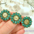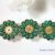 Dark Caribbean green teardrops are spaced around an antiqued gold flower disk. They're secured to a silver-tone metal French barrette hair clip.