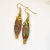 These gorgeous dangle earrings are made with green opal gemstones with copper running through it. A filigree leaf beadcap envelopes the top of the focal bead, with aged gold spacers and round beads completing the design.