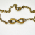 An aged bronze infinity charm sets in the center of a bronze chain.