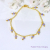 The focus of this lovely anklet are pale lavender riverstone beads paired up with small gold dot beads that are spaced along a gold stainless steel chain that will not tarnish. It closes with a large lobster clasp and a jump ring.