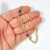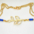 This woodland anklet has a gold branch set in the middle of a double chain. The 7/8" (22 mm) leaf is accompanied by round blue beads and small gold beads.