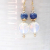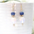 These beautiful dangle earrings are made with an iridescent moonstone gemstone bead topped with a blue lace agate bead. Silver bead caps and spacers complete the design.