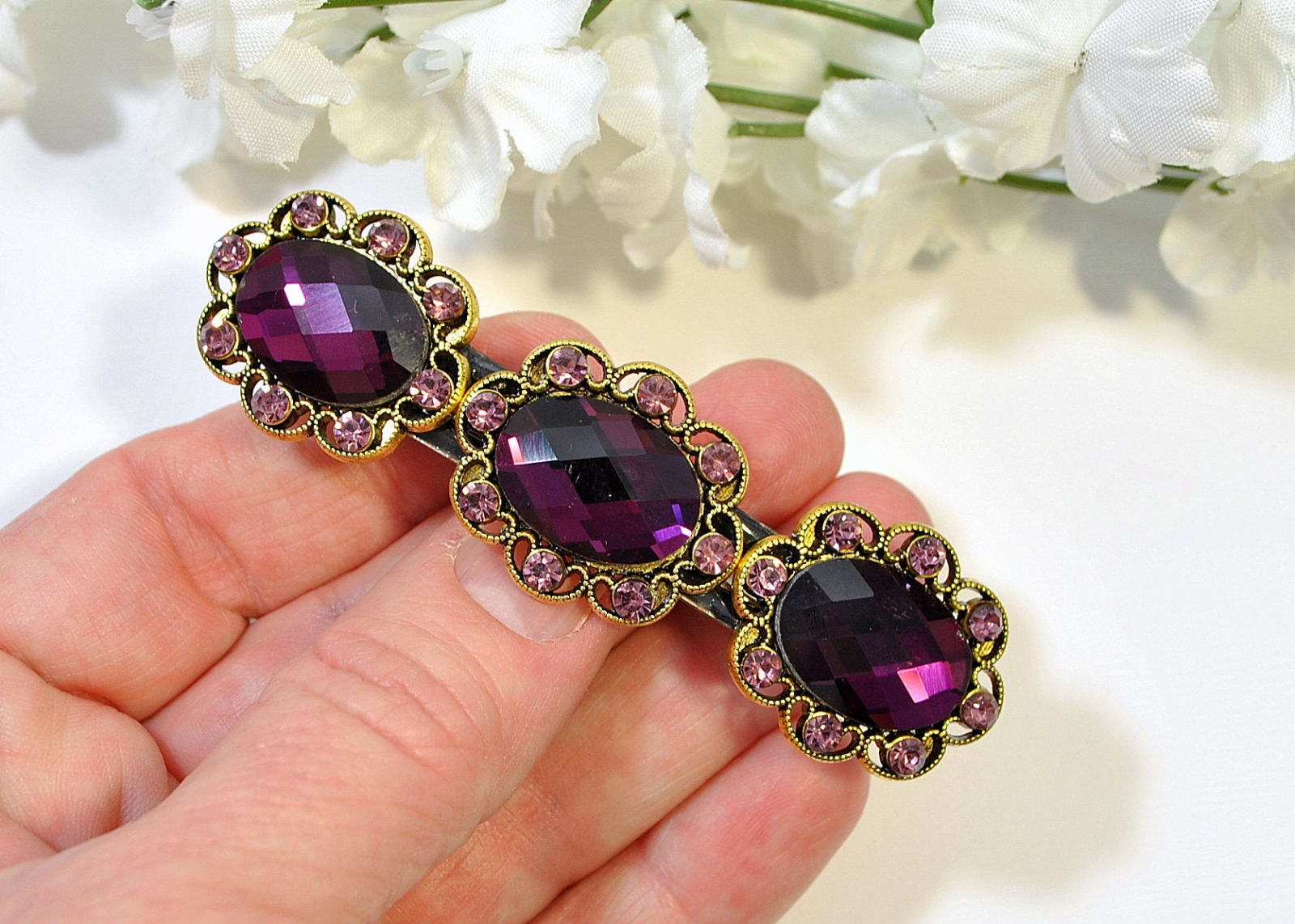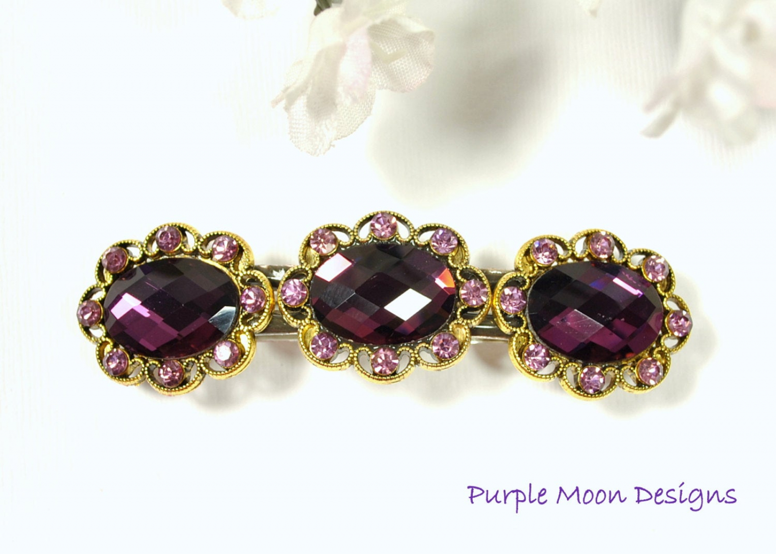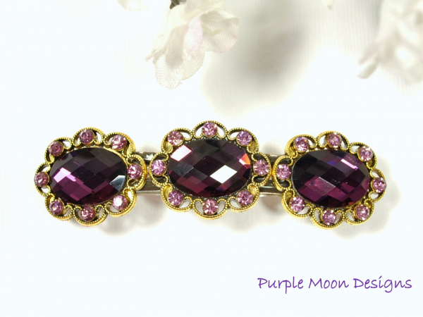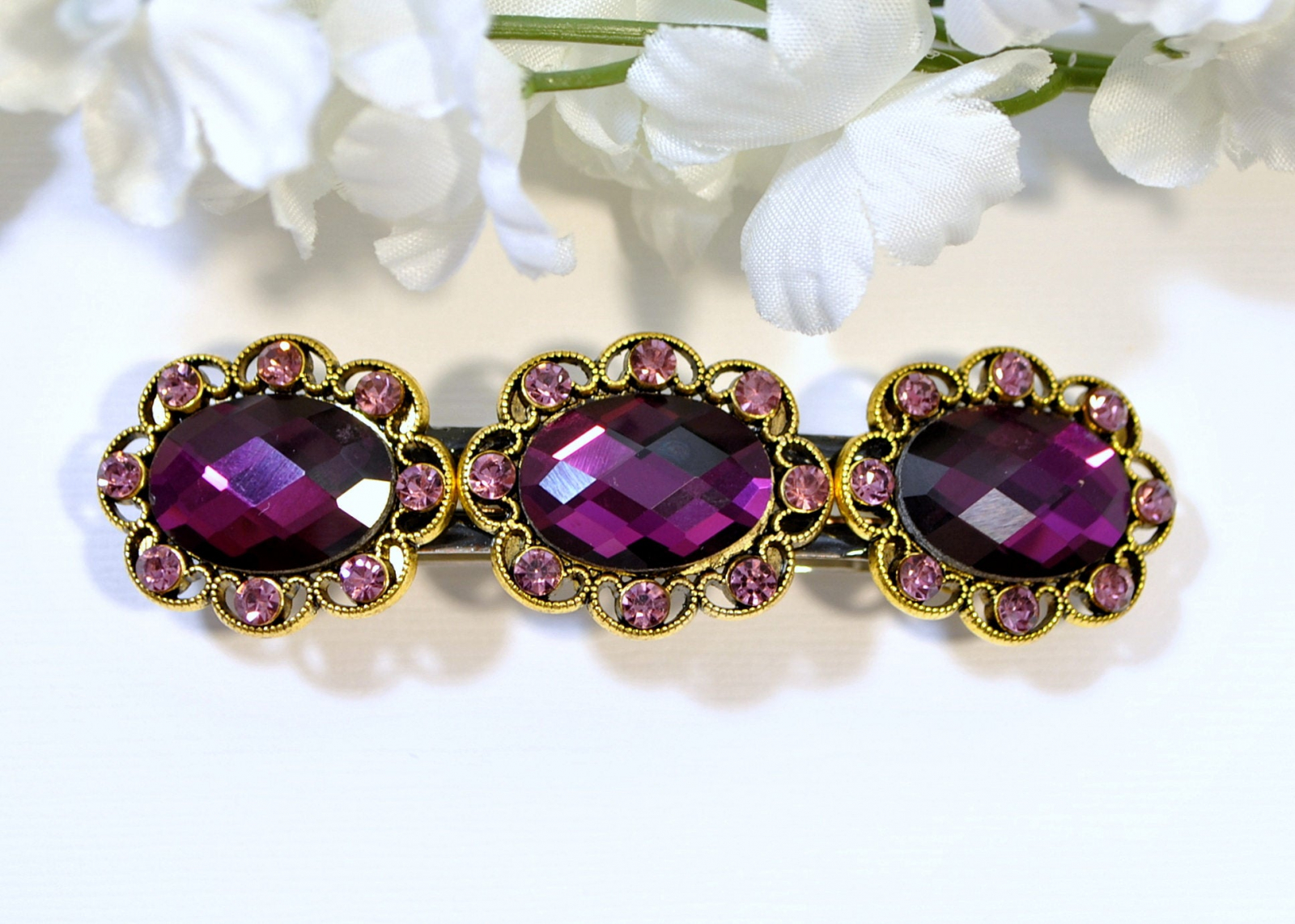 Purple Barrette, Crystal Hair Barrette, Hair Slide, Purple, Gold, Handmade, Hair Clip, French Barrette, Hair Accessories for the Office