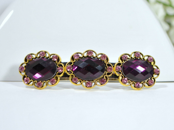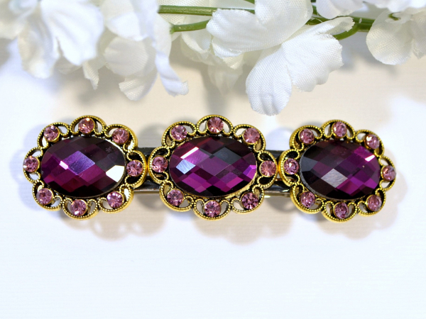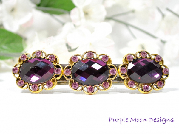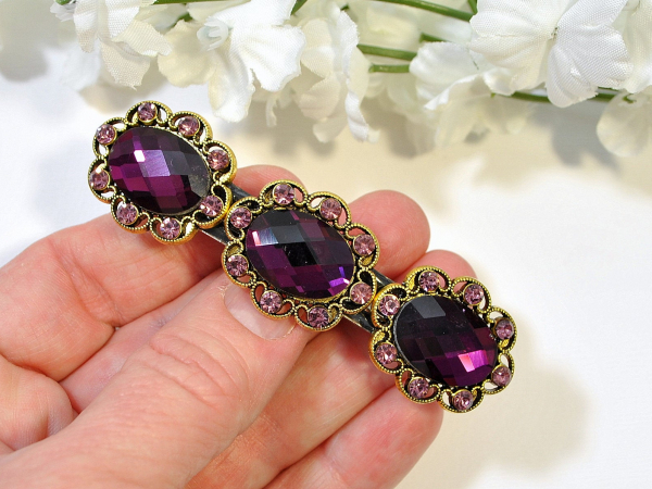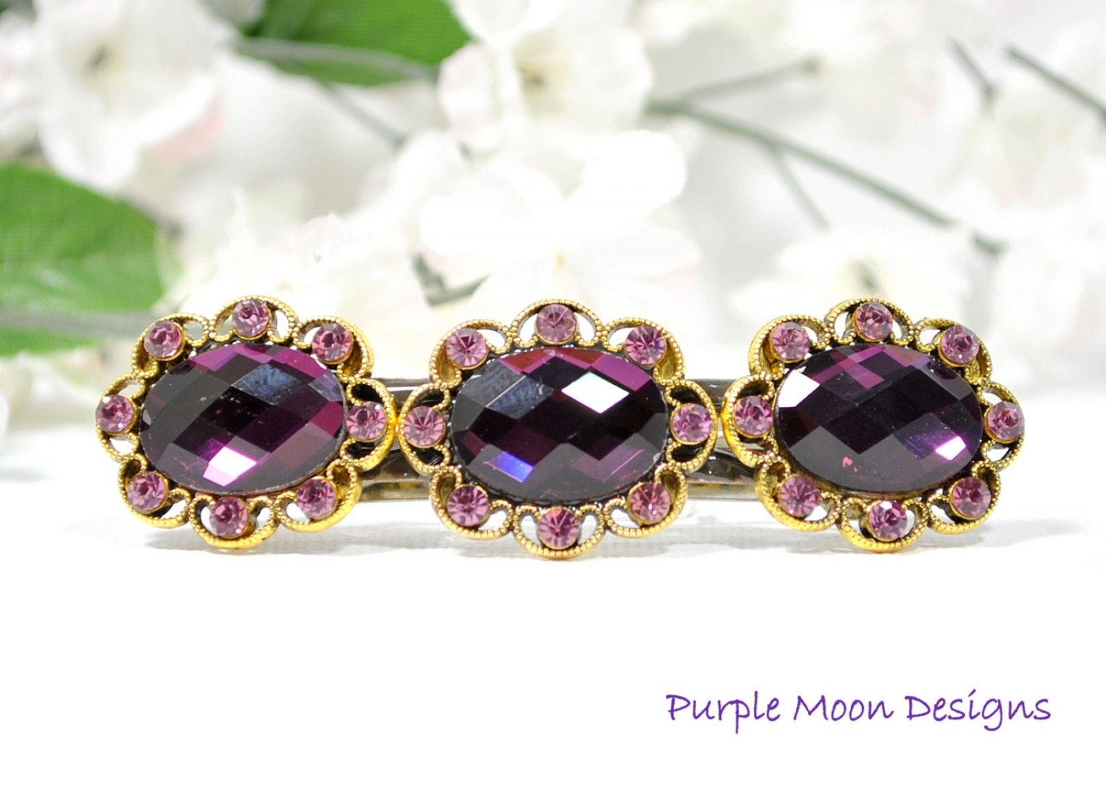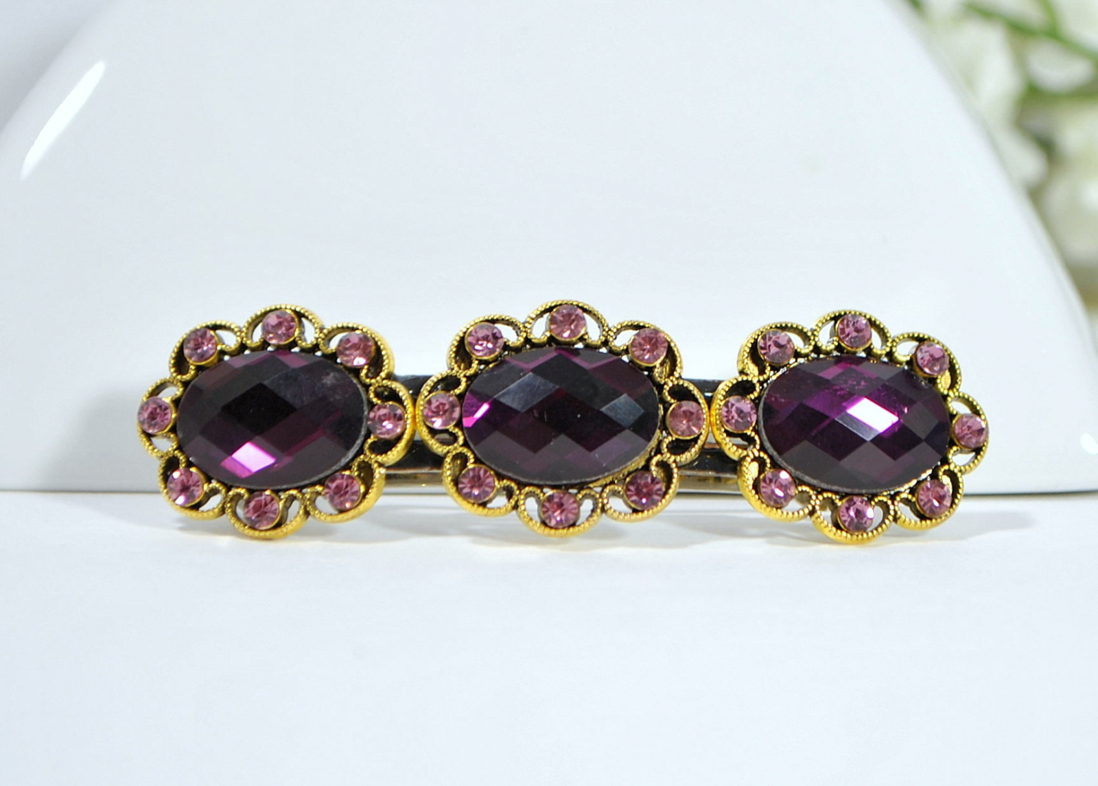 Purple Barrette, Crystal Hair Barrette, Hair Slide, Purple, Gold, Handmade, Hair Clip, French Barrette, Hair Accessories for the Office
