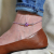 This anklet is embellished with a purple starfish accompanied by lavender glass beads and silver accents. The starfish is set in the middle of a string of lavender seed beads with an aurora borealis finish. It closes with a silver plated lobster clasp and jump ring that has been soldered closed.