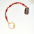 This hair charm is made with magenta riverstone beads with small gold beads as an accent. A gold leaf in a circle hangs from the end.