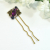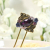 This small hair fork is embellished with a purple facetted crystal centered between two bronze butterflies.