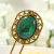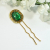 This small hair fork is embellished with a green foil dragon eye set in an aged gold frame. The repurposed pendant is secured to a small hair fork.