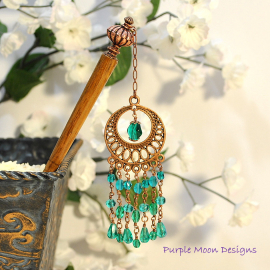 Unique Hair Sticks, Forks, Gypsy Charms, Hair Clips, and Anklets, handmade by Purple Moon Designs Jewelry.