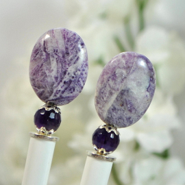 Unique Hair Sticks, Forks, Gypsy Charms, Hair Clips, and Anklets, handmade by Purple Moon Designs Jewelry.